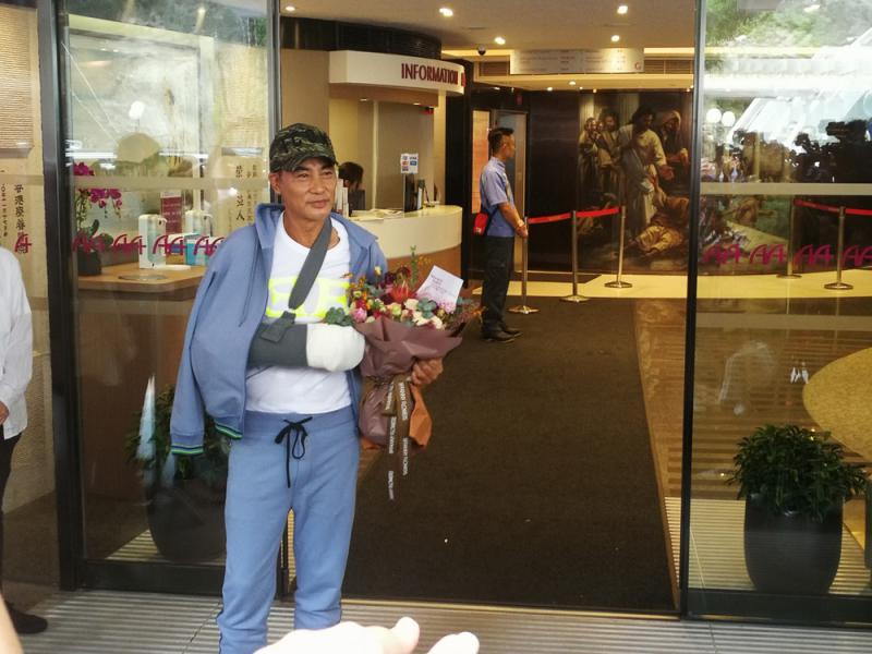 圖:任達華早前於中山受襲返港治理,現時在家中養傷,希望盡快復出拍戲。圖為他於7月24日出院時攝\大公報資料圖片